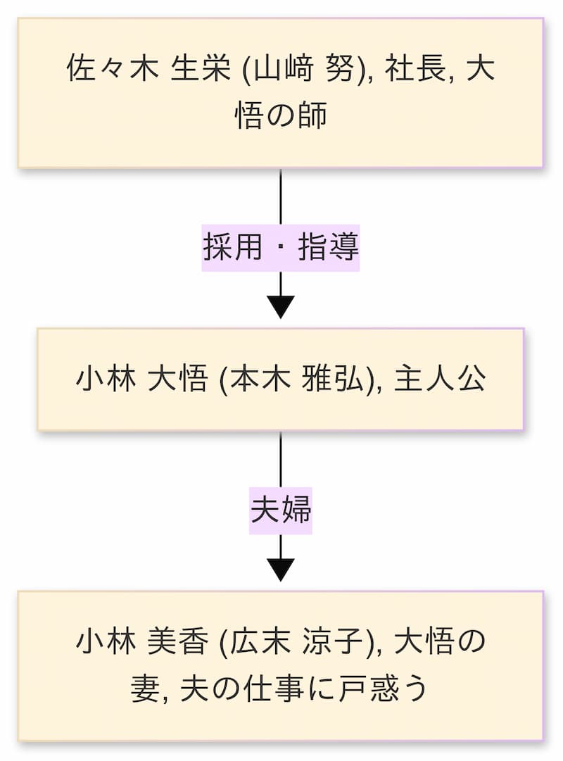 このように主人公・大悟を中心に、妻・美香との価値観の対立、そして師である佐々木社長との出会いが、彼の人生を大きく動かしていきます。
